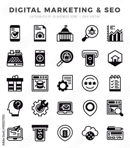 Digital Marketing & SEO elements. Lineal Filled web icon set. Simple vector illustration.