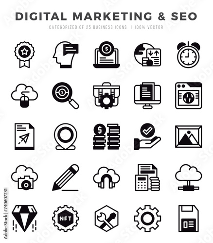 Digital Marketing & SEO icons set. Vector illustration.