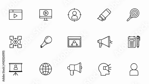 digital marketing set of web icons in line style .eps