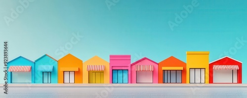 Digital storefronts lined up like a bustling market street, representing diversity in e-commerce offerings, digital market, consumer options
