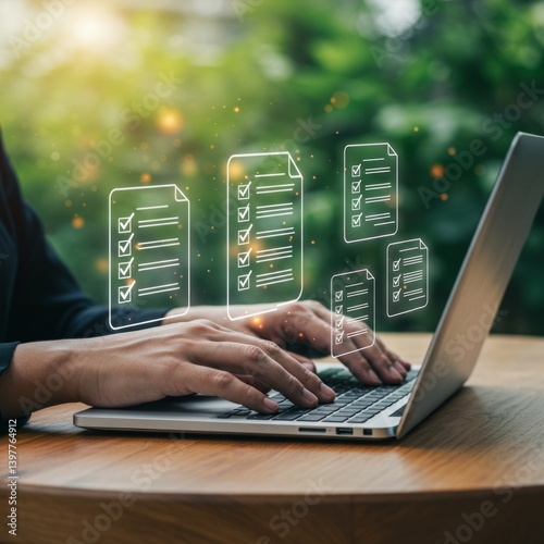 checklist, form, digital, online, laptop, compliance, survey, application, checkmark, completed, computer, business, keyboard, typing, hand, technology, hand, cyberspace, office, working, work, notebook, communication, woman, finger, closeup, people, person, businessman, finger, table, key, web