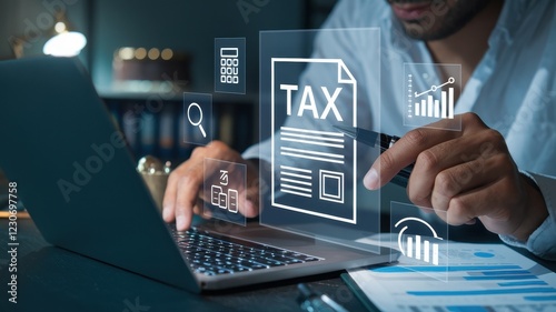 tax, tax, accounting, finance, technology, digital, laptop, computer, online, business, management, preparation, return, filing, payment, software, datum, chart, graph, report, document, form, system, solution, process, efficiency, automation, compliance, regulation, financial, income, expense, inspecting, planning, strategy, calculating machine, desk, person, hand