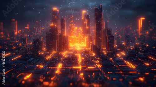 digital tools, data visualization, cyber glow environment, isometric view, modern technology concept,