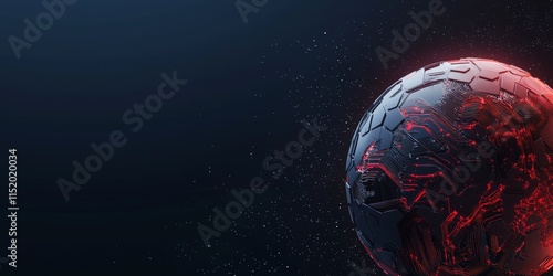 Digital transformation and adaption technology. Glowing globe with red accents against a dark background.