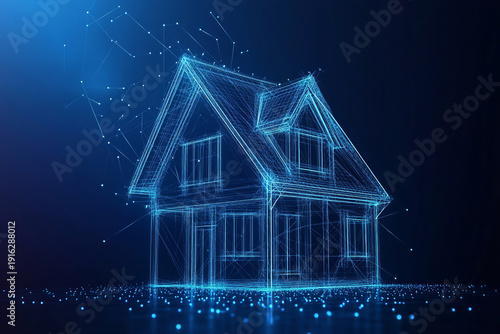 house, digital, wireframe, technology, glowing, blue, architecture, datum, structure, futuristic, blueprint, network, point, line, concept, home, security, construction, design, virtual, system, dark, background, energy, connected, modern, hologram, property, information, property management