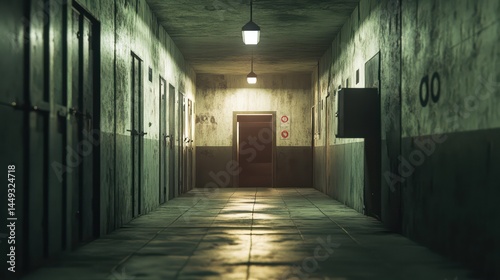 hallway, interior, door, corridor, perspective, empty, muted, light, building, structure, aged, weathered, closed, solitary, abandoned, quiet, mystery, past, still, long, wall, architecture, grey, dark, lighting, doorway, space, stillness, dim, neutral, room, interior design, building exterior, photographic, commercial, editorial, vintage, classic, photo, image, graphic, design, background, empty space, modern, contemporary, industrial, illustration