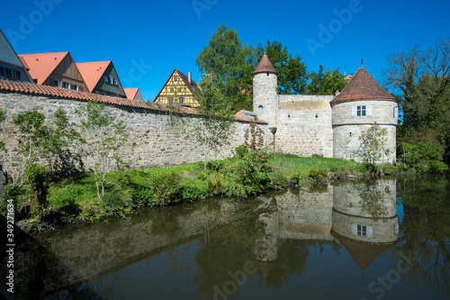 watchtower, city wall, bavaria, idyl, romantic, middle-ages, historic, heaven, blue, water, reflex, tourist attraction, tour tourism