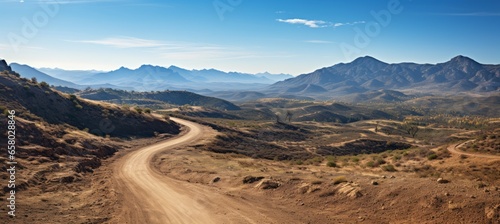 desert, road, dirt, mountain, tree, hill, sand, remote, rural, field, countryside, vale, landscape, travel, scenic, mountain, journey, country, view, natural, aerial, top, nature, environment, up high, background