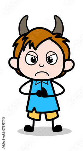 Disappointed Devil with Horns - School Boy Cartoon Character Vector Illustration