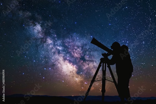 Discovering the Wonders of the Milky Way, Astronomer Observing the Celestial Beauty through a Telescope on a Clear Night Sky.