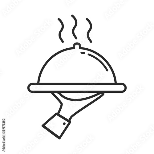dish, service, serving, hold, ready, equipment, template, place, logotype, element, kitchen utensile, butler, flatware, tool, eat, taste, crockery, delicious, cafes, tasty, carry, hand, symbol, waiter, illustration, food, dinner, menu, chef, eatery, cook, kitchen, vector, design, flat, plate, icon, lunch, background, meal, hot, serve, catering, metal, dining, art, elegant, cooking, cover
