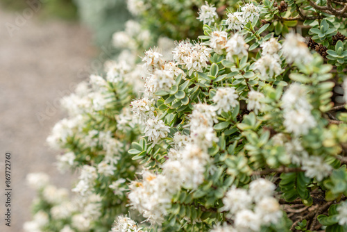 Disk leaved hebe or Hebe Pinguifolia plant in Saint Gallen in Switzerland