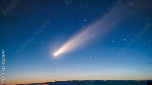 Distant comet lighting up a deep blue horizon