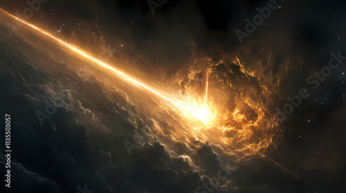 distant, emitting, powerful, beam, across, universe, gloaming, illustration