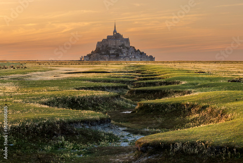 mont saint michel, france, island, abbey, mediaeval, architecture, heritage, landscape, sunset, grass, marsh, tidal, coast, scenic, dramatic, travel, tour tourism, destination, iconic, europa, nature, horizon, twilight, monastery, seascape, historic, famous, dramatic sky, pilgrimage, cloud, beauty, serenity, magical, ancient, landmark, mystical, countryside, elevated, panoramic, silhouette, wonder, green, pattern, peaceful, dreamy, retreat, spiritual, art