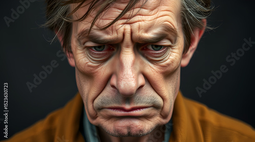distorted face of sad and grieved very upset person, dissatisfied with his hard fate