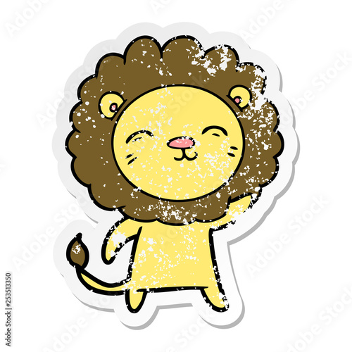 distressed sticker of a cartoon lion