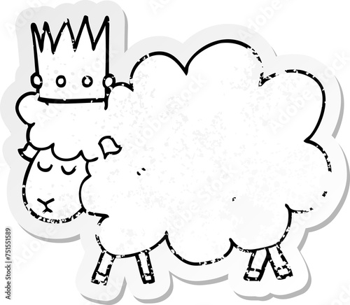 distressed sticker of a cartoon sheep wearing crown
