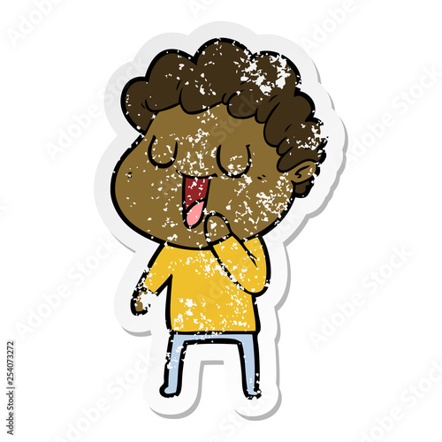 man, male, boy, laughing, happy, cheerful, cute, cartoon, sticker, distressed, grunge, realistic, torn, ripped, old, stick, on, icon, decal, label, drawing, illustration, retro, doodle, freehand, free, hand, drawn, quirky, art, artwork, funny, character