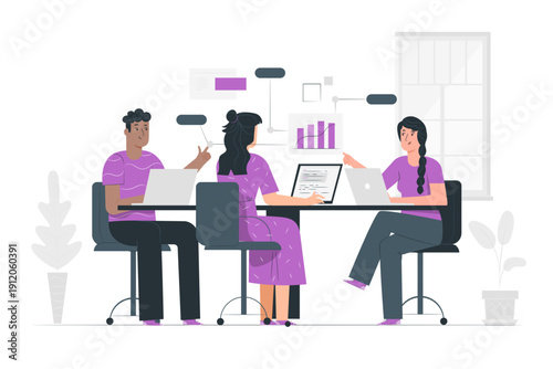 team, business, collaboration, office, workplace, diverse, people, group, laptop, computer, technology, innovation, success, modern, bright, lighting, meeting, discussion, brainstorming, communication, professional, colleague, co-worker, startup, corporate, design, vector, illustration, flat, colourful, cheerful, productivity, creativity, teamwork, management, leadership, chair, table, businessman, businesswoman, concept