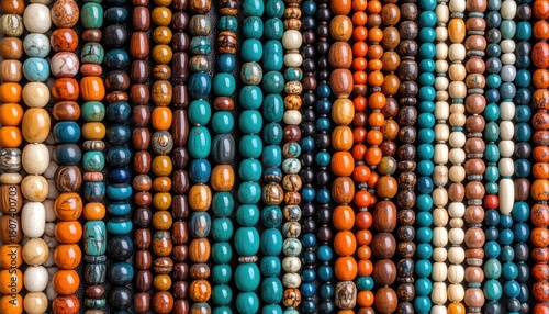 bead, gem, colours, stone, jewellery, craft, hand-made, art, market, design, fashion, accessory, orange, turquoise, brown, red, blue, background, ai, generated