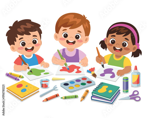 children, painting, drawing, school, education, creativity, art, class, student, watercolor, palette, brush, paper, crayons, crayons, glue, scissors, learning, hobby, fun, childhood, friends, boy, girl, diversity, preschool, kindergarten, classroom, teacher, imagination, activity, together, happy, smiling, colourful, tool, craft, lesson, development, talent, notebook, supply, artist, young, indoor, work, table, desk