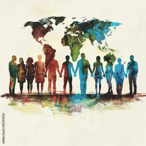 diversity, oneness, earth, map, people, group, colourful, illustration, global, community, togetherness, international, teamwork, harmony, cooperation, culture, connection, friendship, support, solidarity, equality, peace, humanity, art, watercolor, silhouette, abstract, background, vibrant, social, concept, design, inclusive, multicultural, partnership, network, collaboration, bond, integration