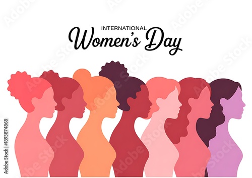 Diverse group of women silhouettes celebrating international womens day with handwritten text