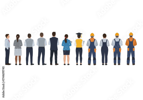 Diverse group of workers facing away in a workplace setting