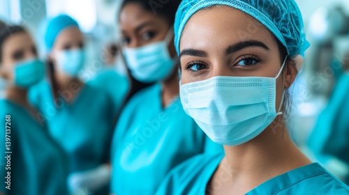 Diverse medical team in brightly lit operating room at work