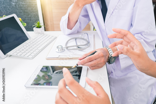 Doctor consulting patient hands closeup. medical service, consultation or education, healthy