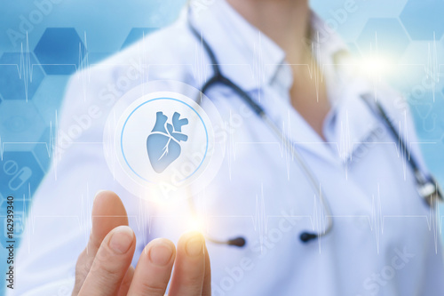 Doctor shows the icon with the heart .