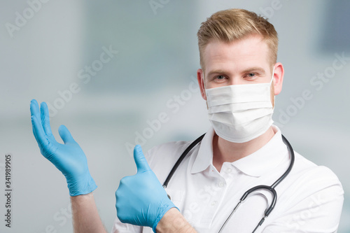 protection, hygiene, professional, education, thumb up, doctor, general practitioner, virus, bacillus, germ, glove, laboratory, clinic, hospital, quarantine, epidemic, sars, medicine, equipment, academic, scientist, safety, confidence, fearless, serious, labcoat