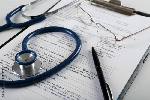 background, blue, business, care, clinic, clinical, clipboard, closeup, composition, concept, consultation, make well, desktop, diagnosis, doctor, goggles, group, health, health care, healthy, history, hospital, disease, medicals, medication, medicine, metal, modern, new, nobody, office, paper, pen, professional, record, science, stethoscope, still, table, tool, treatment, work, workplace