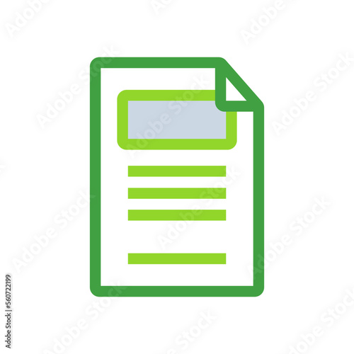 Document business icon with green duotone style. Document, sign, paper, symbol, file, page, note. Vector illustration