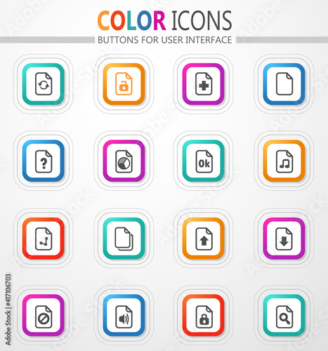 vector, buttons, icon, colours, set, interface, decoration, frame, stroke, flat, shadow, business, computer, office, paper, document, file, symbol, signs, element, isolated, web, summing, create, delete, datum, download, upload, browse, open, empty, organise, note, contract, find, check, search, collection, message, pad, page, app, simple, notepad