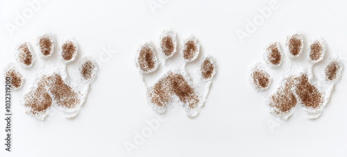 Dog footprints on a white background. , isolated on white background, , free space text, copy space, copy space for text,