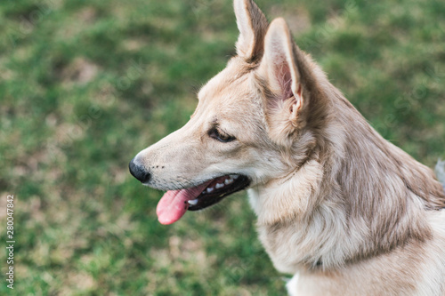 dog, look, husky, beige, look, distance, white, friends, animal, beautiful, blue, breed, portrait, canino, closeup, cute, domestic, fur, happy, leash, nature, pedigree, pet, purebred, smiling, forest, grey, morning, park, walk, watching, face