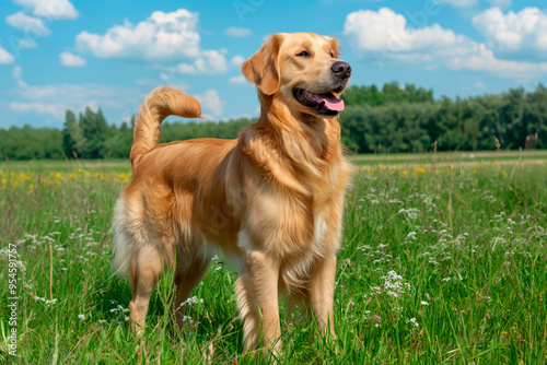 pet, dog, breed, cute, nature, animal, grass, friends, mammal, purebred, adorable, domestic, happy, portrait, green, beautiful, park, puppy, field, background, outside, young, lawn, sky, cloud, flower, doggy, brown, lifestyle, yellow