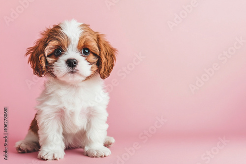 dog, puppy, spaniel, pet, animal, cavalier, king, charles, canino, white, cute, brown, isolated, breed, mammal, portrait, adorable, pedigree, domestic, sitting, purebred, young, studio