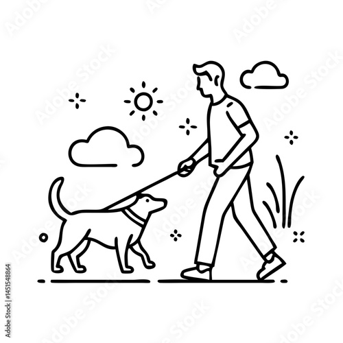 dog walking icon, dog walking line art - simple line art of dog walking, perfect for dog walking logos and icons