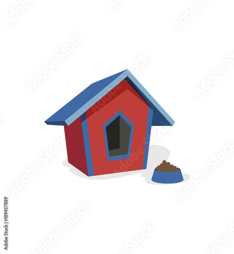 Doghouse, booth, kennel and bowl for eating cartoon vector Illustration