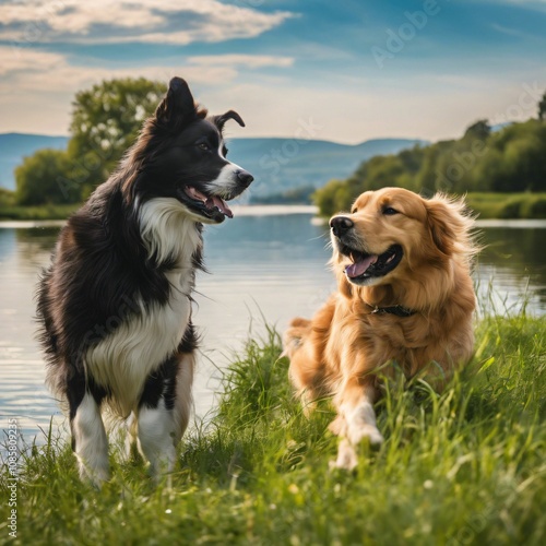 dogs having fun in a beautiful landscape