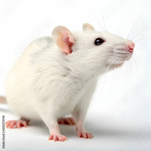 Domestic cute white rat on white background