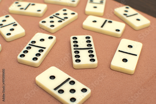Dominoes bones on brown background