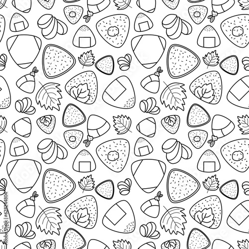 doodle line Various types of Onigiri with pickled ginger and green Shiso concept seamless pattern on white background. abstract vector illustration.