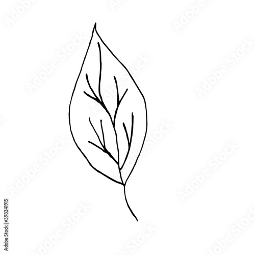 Doodle plant leaf on white background. Vector illustration. Hand drawing.