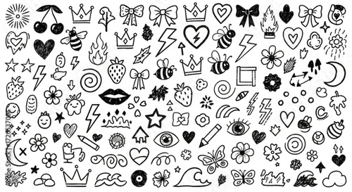 heart, star, whimsical, pattern, lightning, lip, brilliant, clip art, element, dream, honed, artistic, butterfly, graphic, charme, playful, animal, enchanting, joy, stunning, delightful, positive, eye, ornament, drawing, fantastic, delicate, crayons, love, aesthetic, lovely, fun, hand-drawn, isolated, wave, romantic, elegant, happy, vignetting, shape, cool, bee, white, vintage, collection, modern, art, adorable