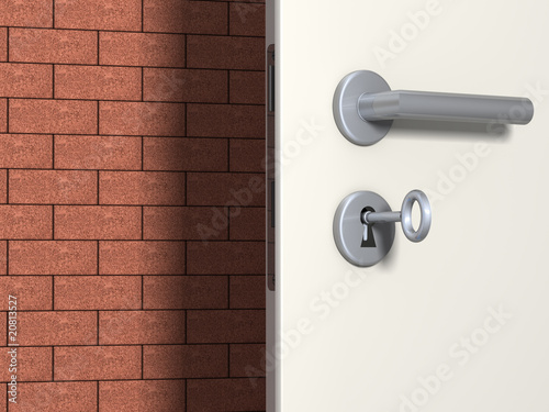 door, business, perspective, brick, clinker, vision, future, possible, impossible, isolated, copy space, abstract, wall, stone, barred, closed, way, open, prospect, outlook, key