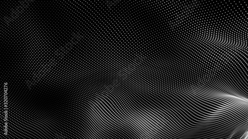 Dot white black wave technology texture background. Abstract big data digital concept. 3d rendering.